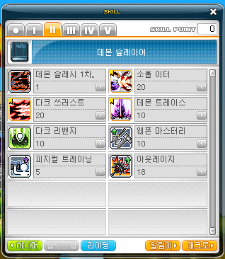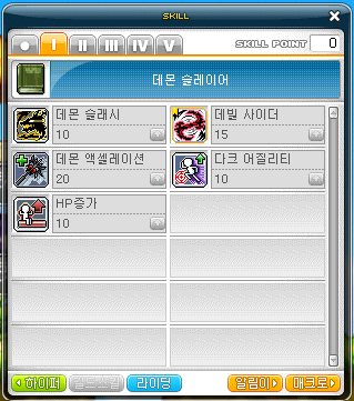 다크 어질리티M > HP증가M > 데몬 액셀레이션M > 데몬 슬래시M > 데빌 사이더M