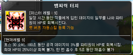 스킬을 사용하게 되면 보스전에서 피흡이 되는 스킬입니다.