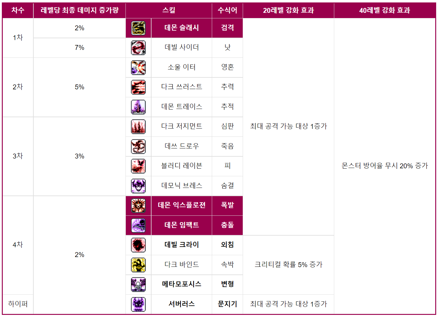 데몬 슬래시 최종 강화1 > 데몬 익스플로젼1 > 데몬 임팩트1