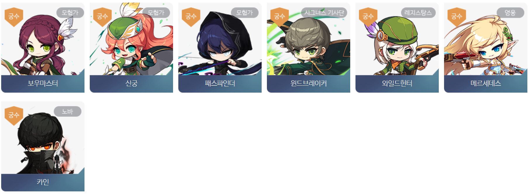 궁수 직업군은 아무래도 메이플에서 가장 적은 갯수를